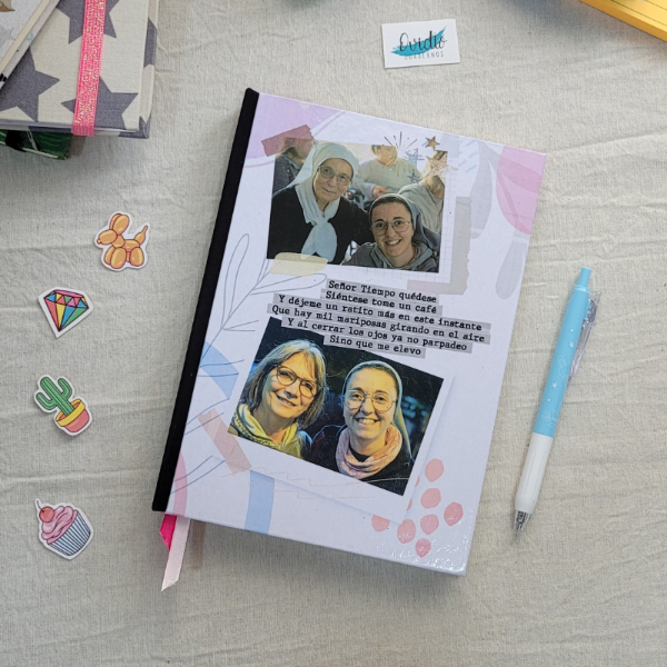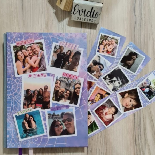 La idea es que juntos podamos armar el diseño que buscas, tapa personalizada y el dorso y lomo estarían forrado con tela, para mayor duración.